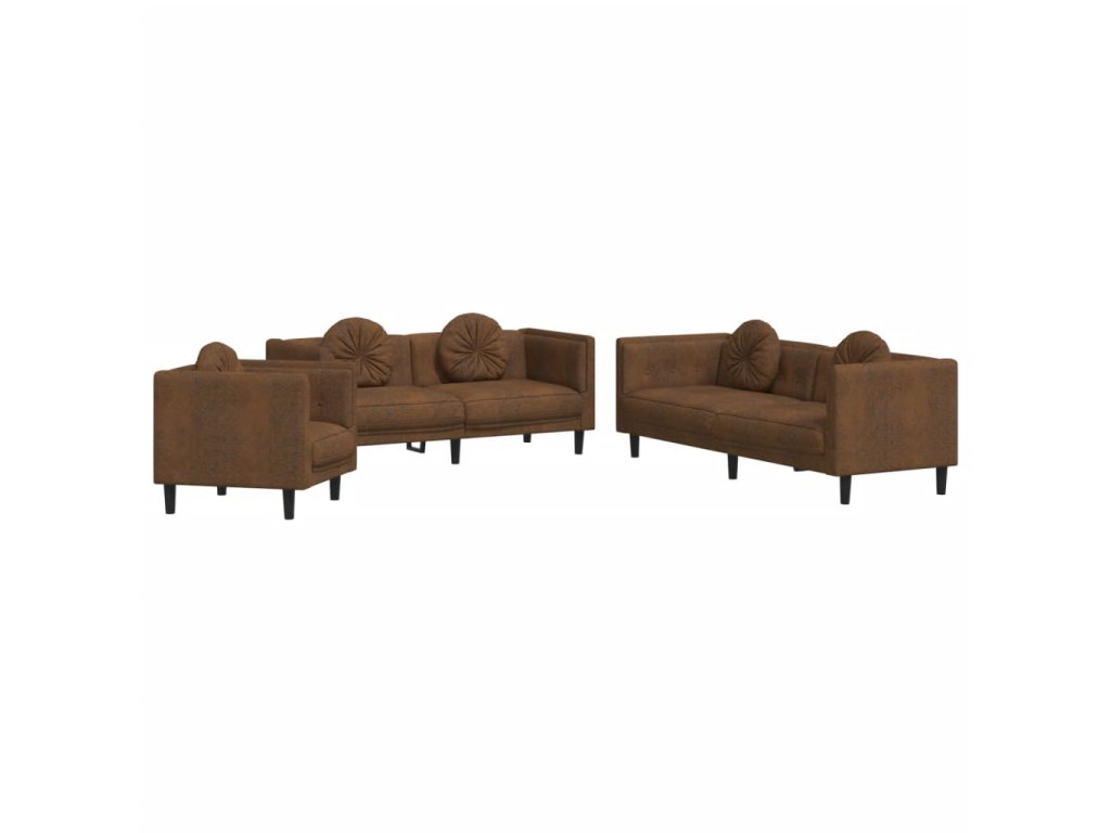 3dílná sedací souprava s polštáři hnědá samet 3209256