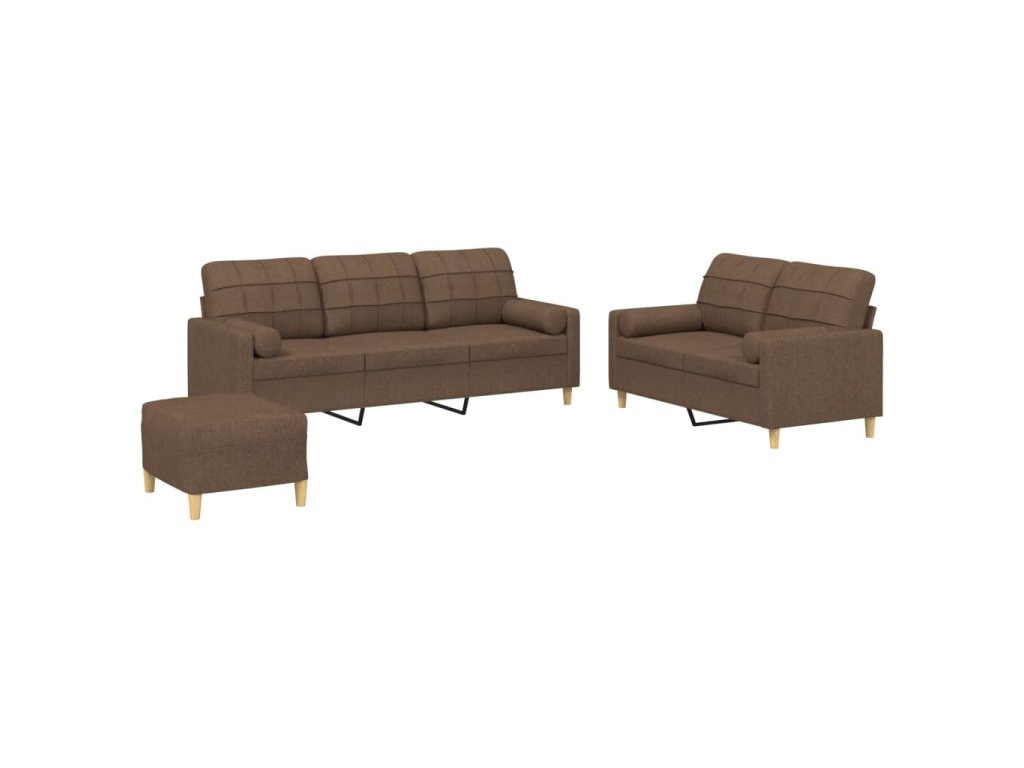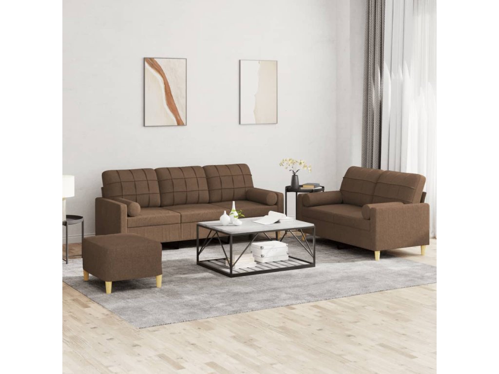3dílná sedací souprava s polštáři hnědá textil 3201333
