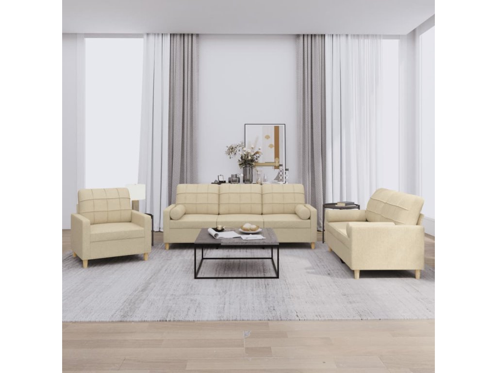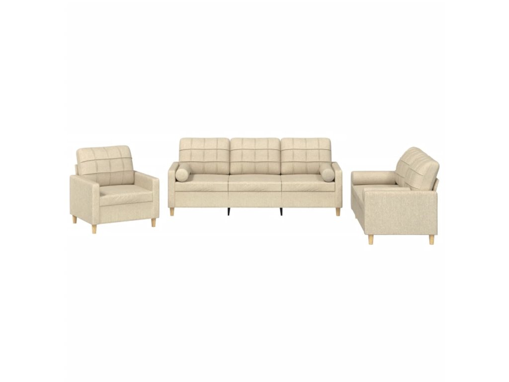 3dílná sedací souprava s polštáři krémová textil 3201260