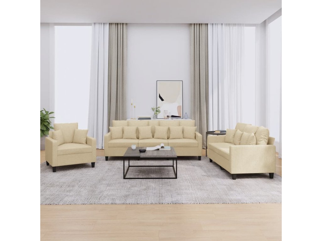 3dílná sedací souprava s polštáři krémová textil 3201634