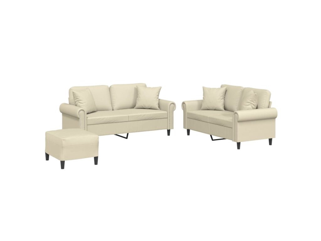 3dílná sedací souprava s polštáři krémová umělá kůže 3202166