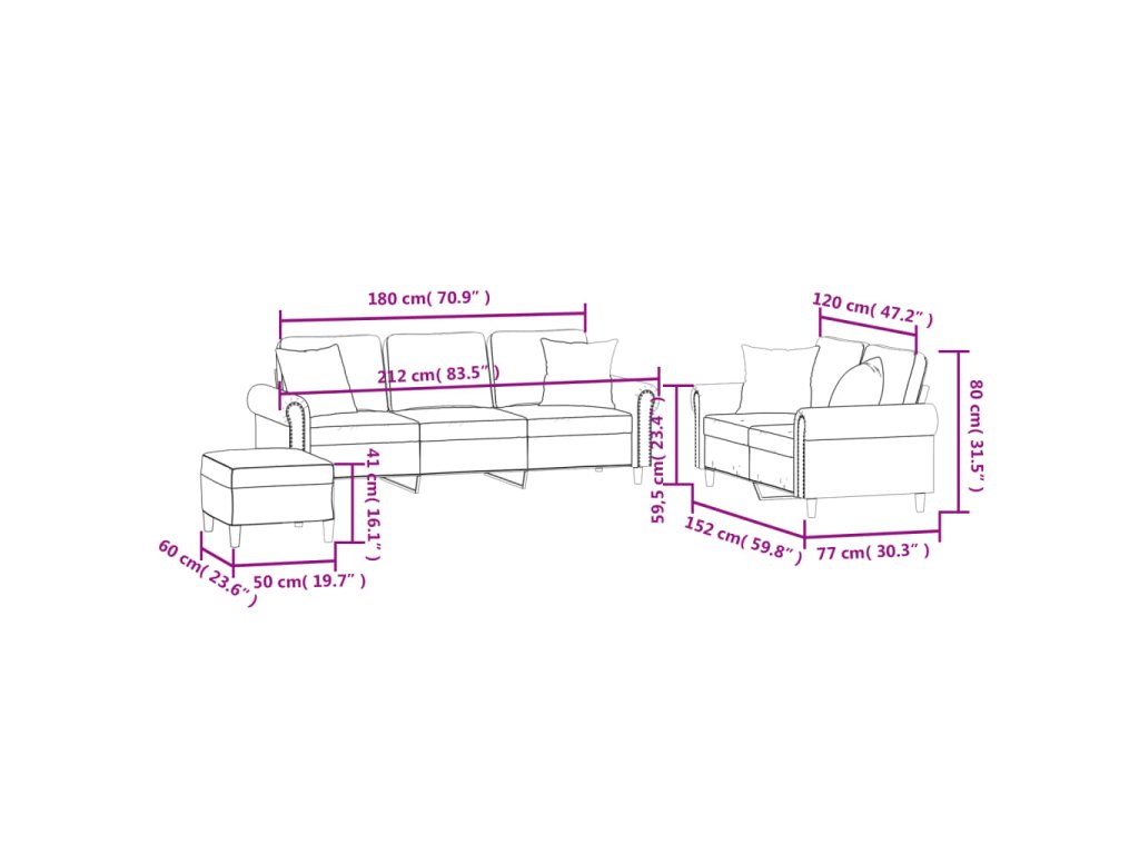 - Celkové rozměry: 212 x 77 x 80 cm (Š x H x V)