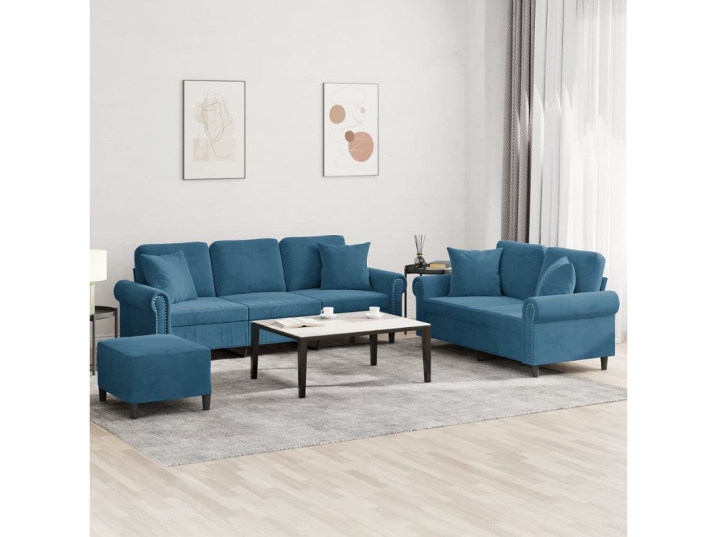 3dílná sedací souprava s polštáři modrá samet 3202289
