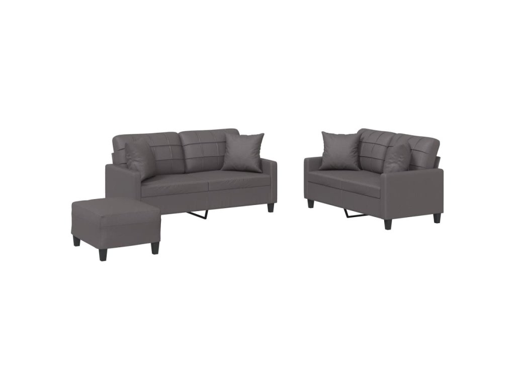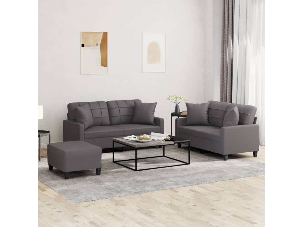 3dílná sedací souprava s polštáři šedá umělá kůže 3201375