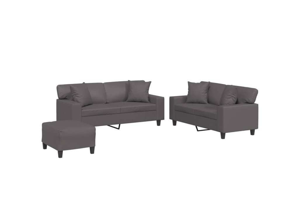 3dílná sedací souprava s polštáři šedá umělá kůže 3201931