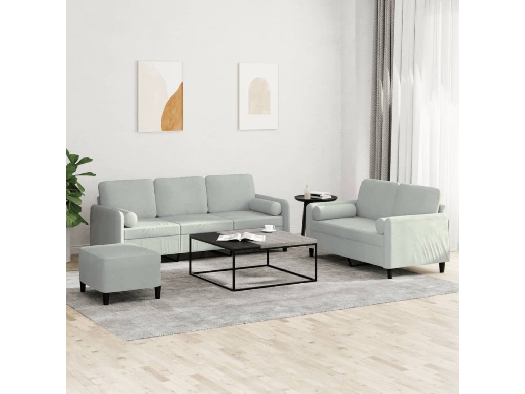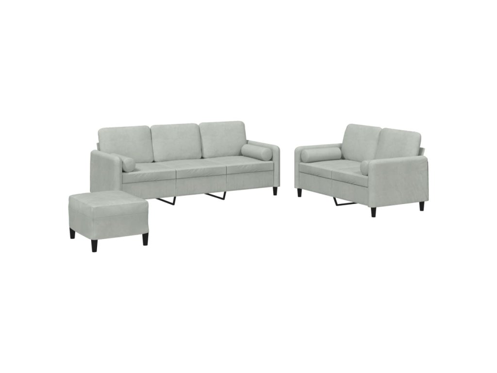 3dílná sedací souprava s polštáři světle šedá samet 3202044