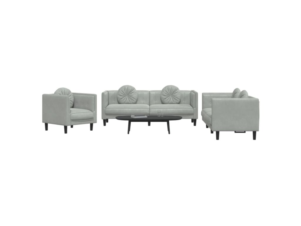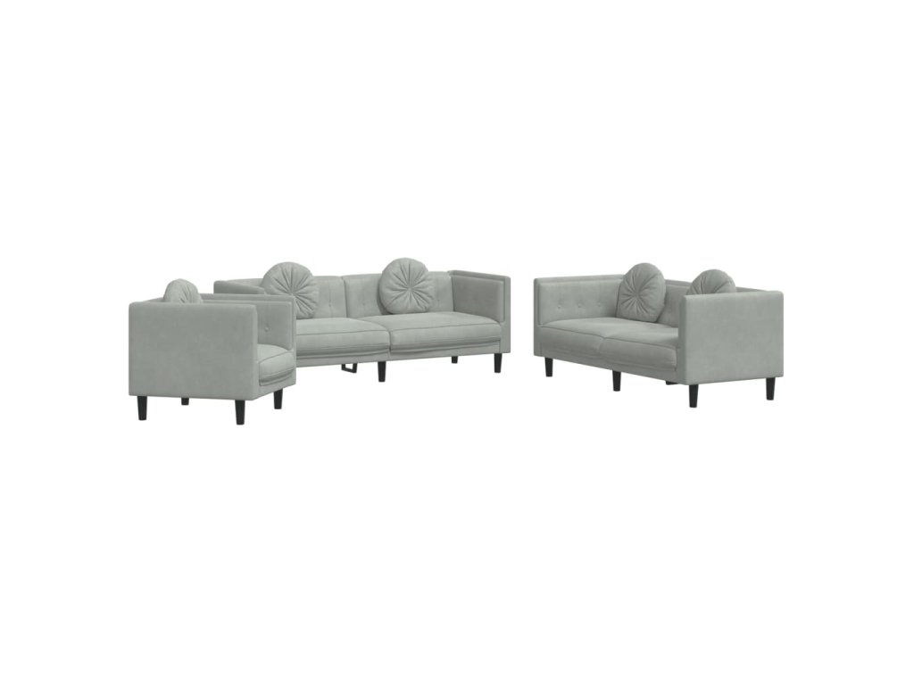 3dílná sedací souprava s polštáři světle šedá samet 3209247