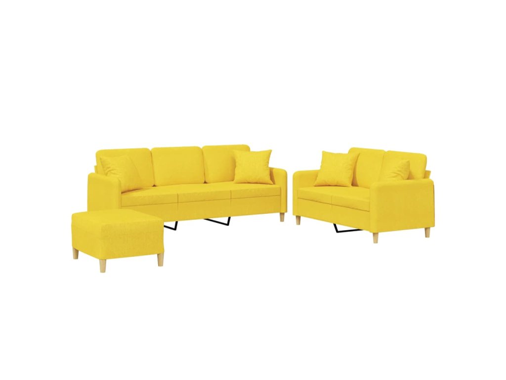 3dílná sedací souprava s polštáři světle žlutá textil 3202147