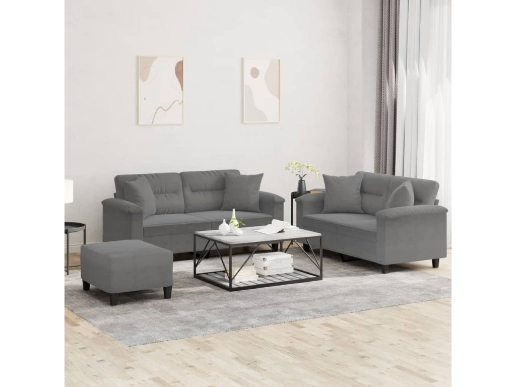 3dílná sedací souprava s polštáři tmavě šedá mikrovlákno 3202334