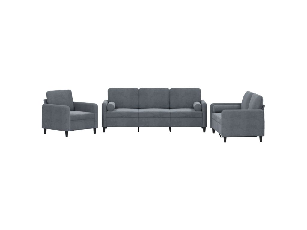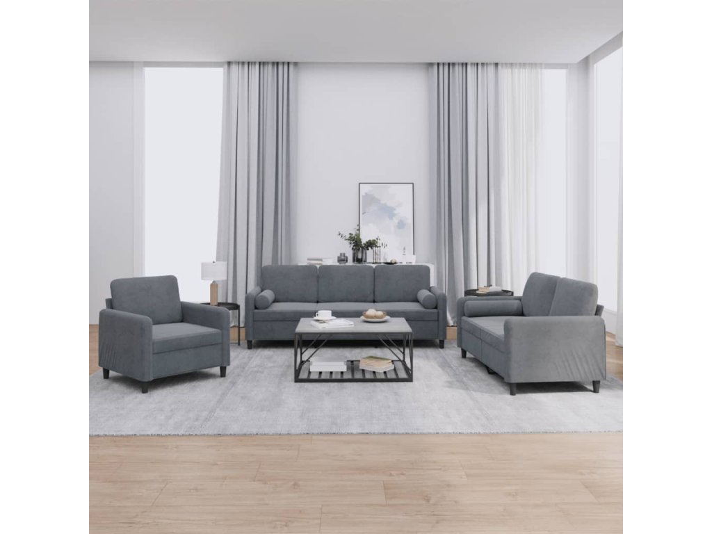 3dílná sedací souprava s polštáři tmavě šedá samet 3201955