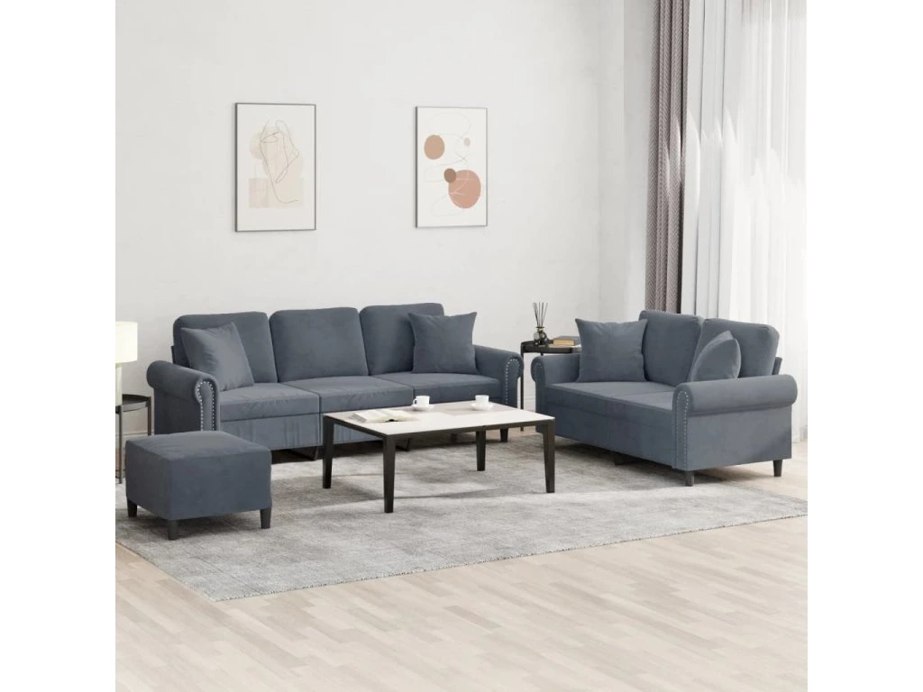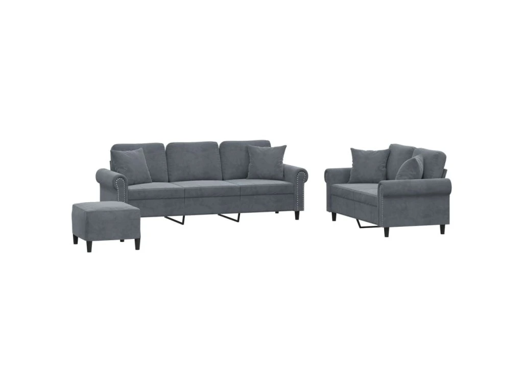 3dílná sedací souprava s polštáři tmavě šedá samet 3202281