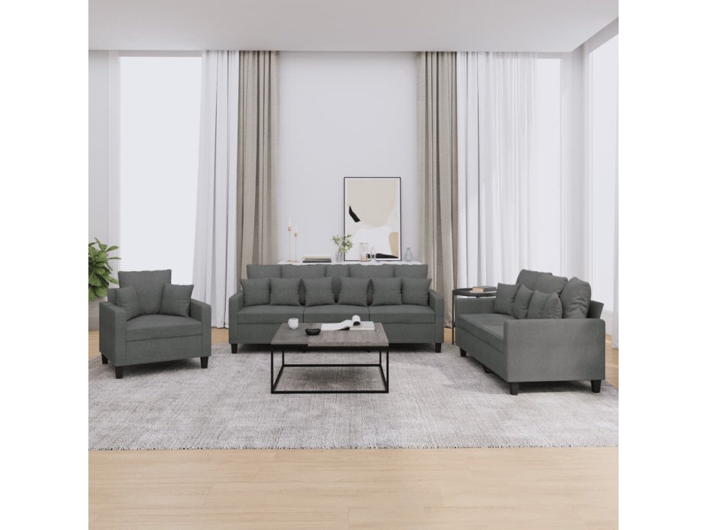 3dílná sedací souprava s polštáři tmavě šedá textil 3201633