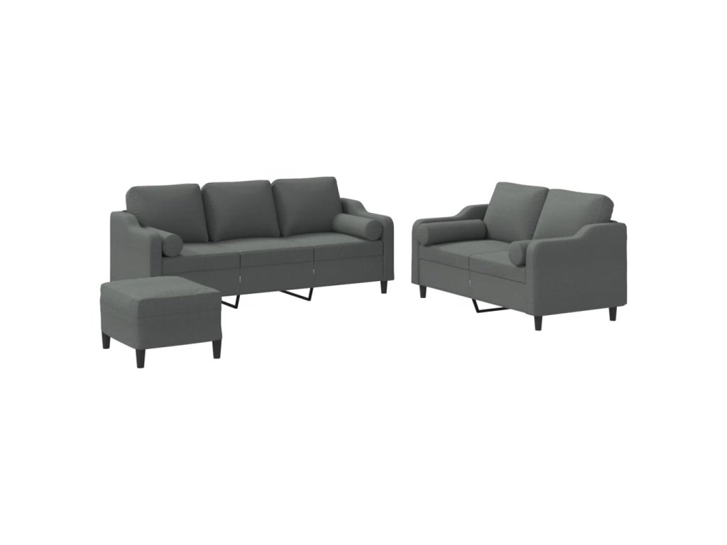 3dílná sedací souprava s polštáři tmavě šedá textil 3201859