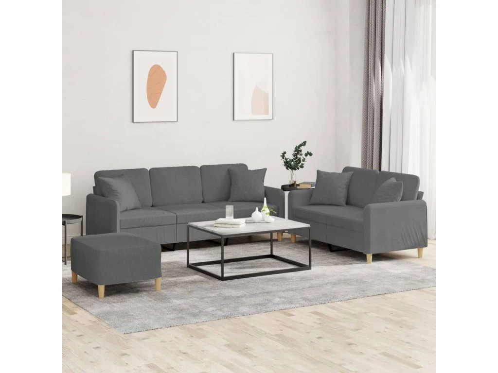 3dílná sedací souprava s polštáři tmavě šedá textil 3202143