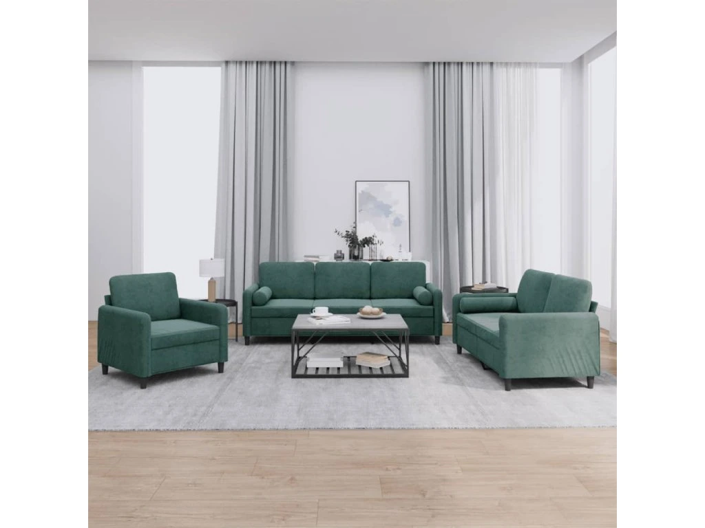 3dílná sedací souprava s polštáři tmavě zelená samet 3201956
