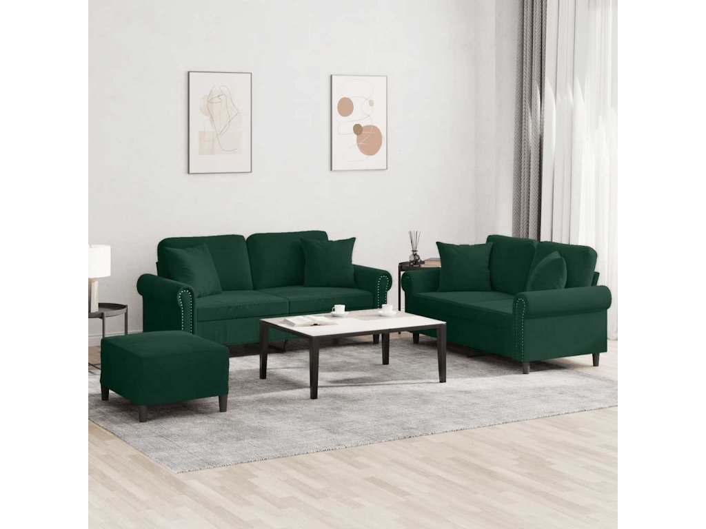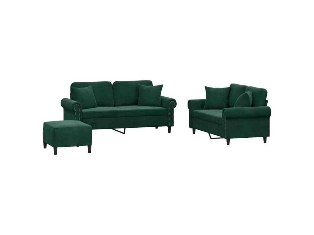 3dílná sedací souprava s polštáři tmavě zelená samet 3202242