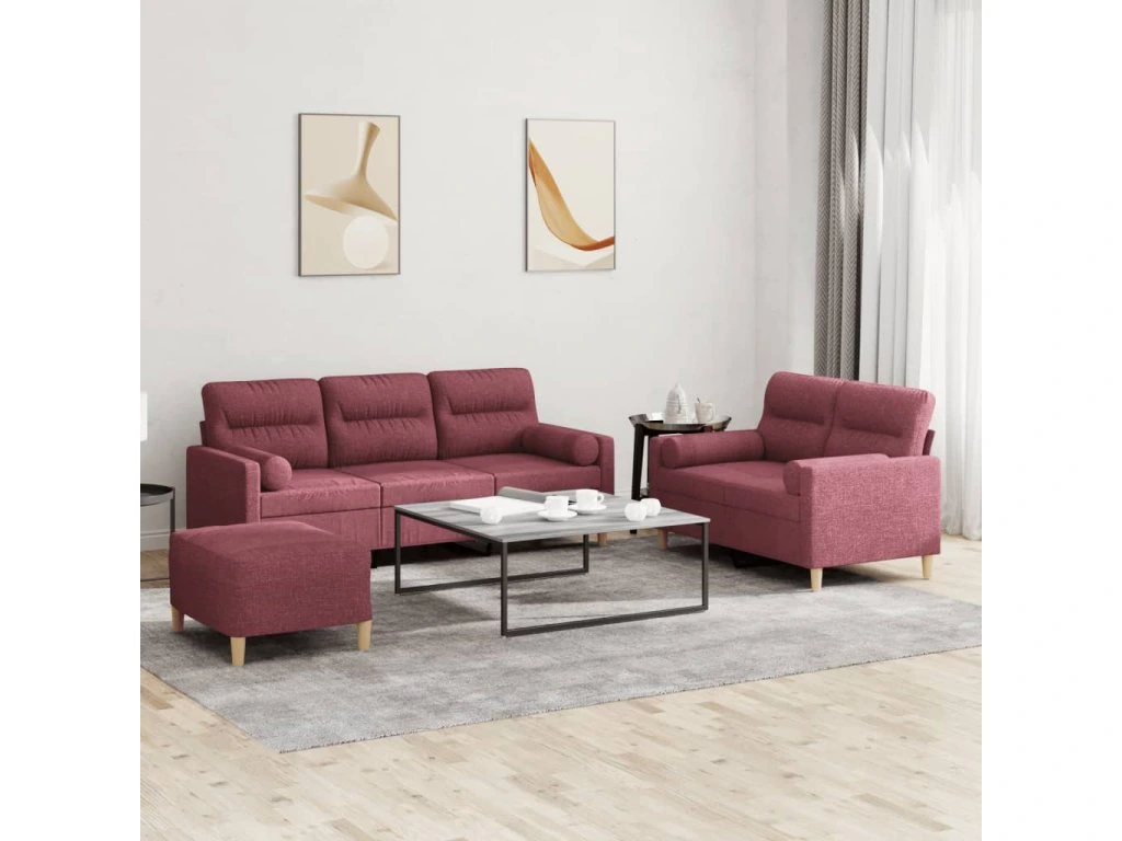 3dílná sedací souprava s polštáři vínová textil 3201630