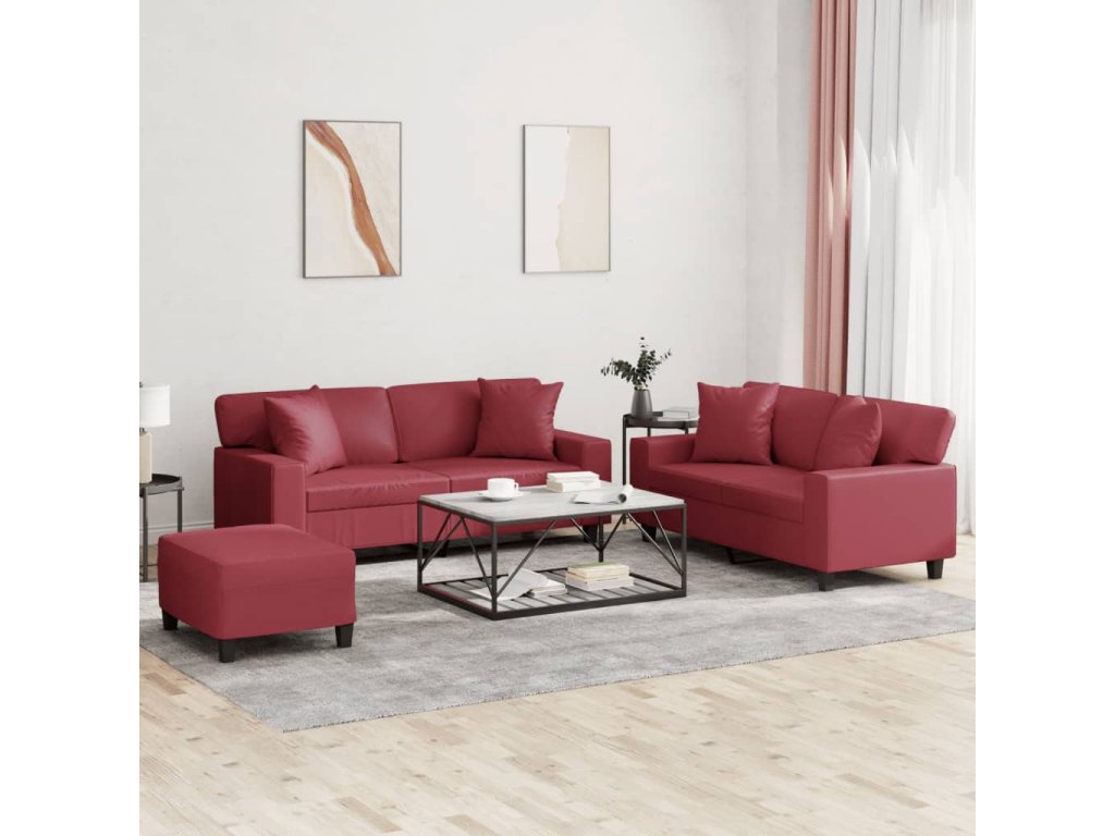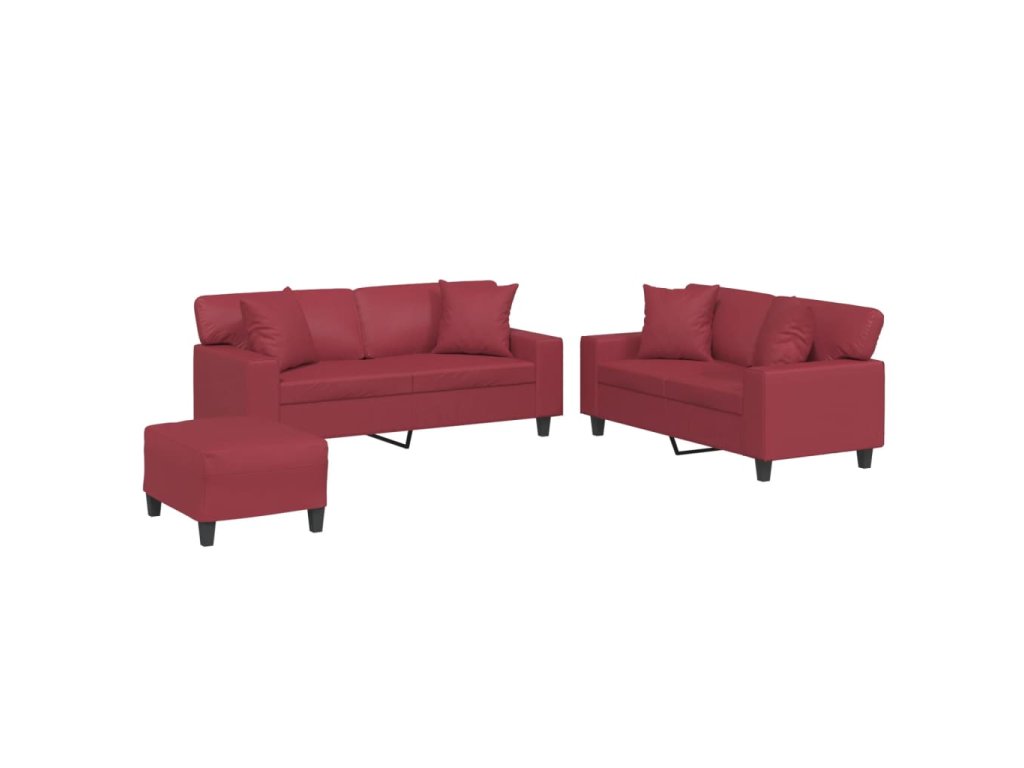 3dílná sedací souprava s polštáři vínová umělá kůže 3201932