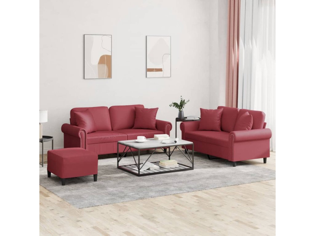 3dílná sedací souprava s polštáři vínová umělá kůže 3202168