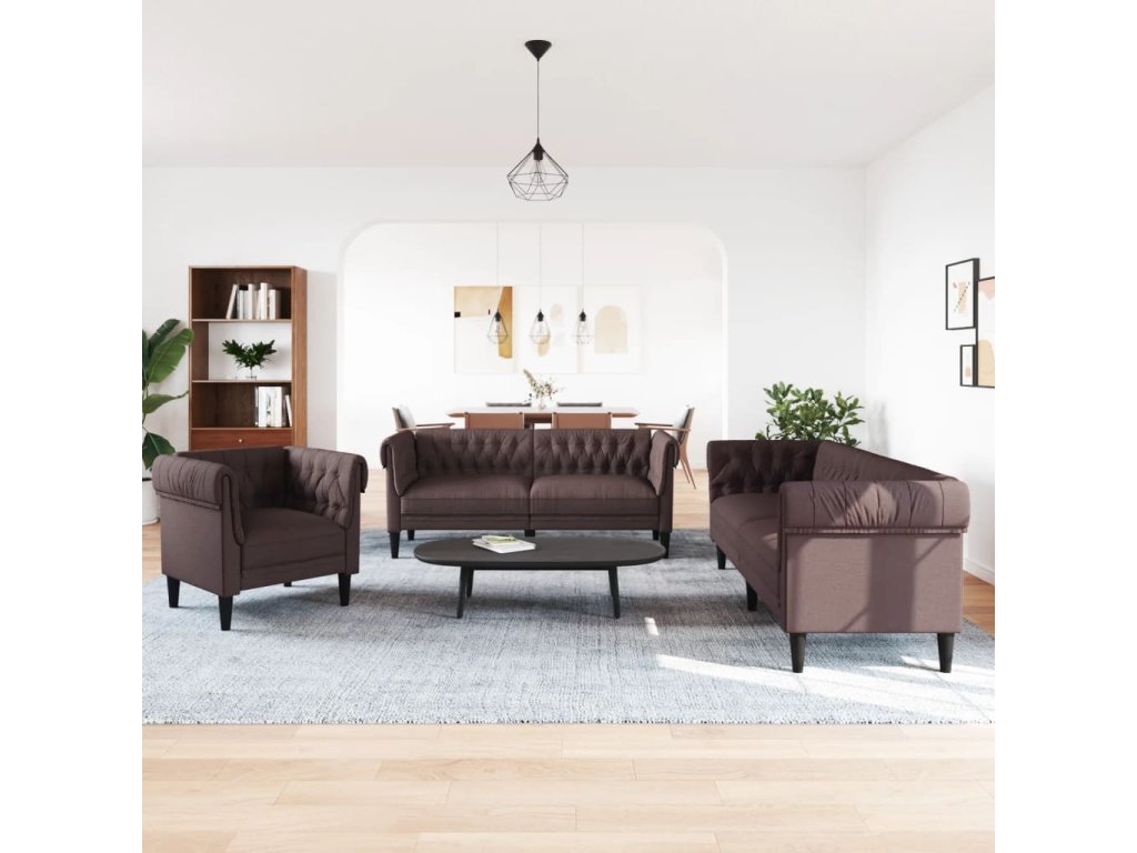 3dílná sedací souprava tmavě hnědá textil 3209194
