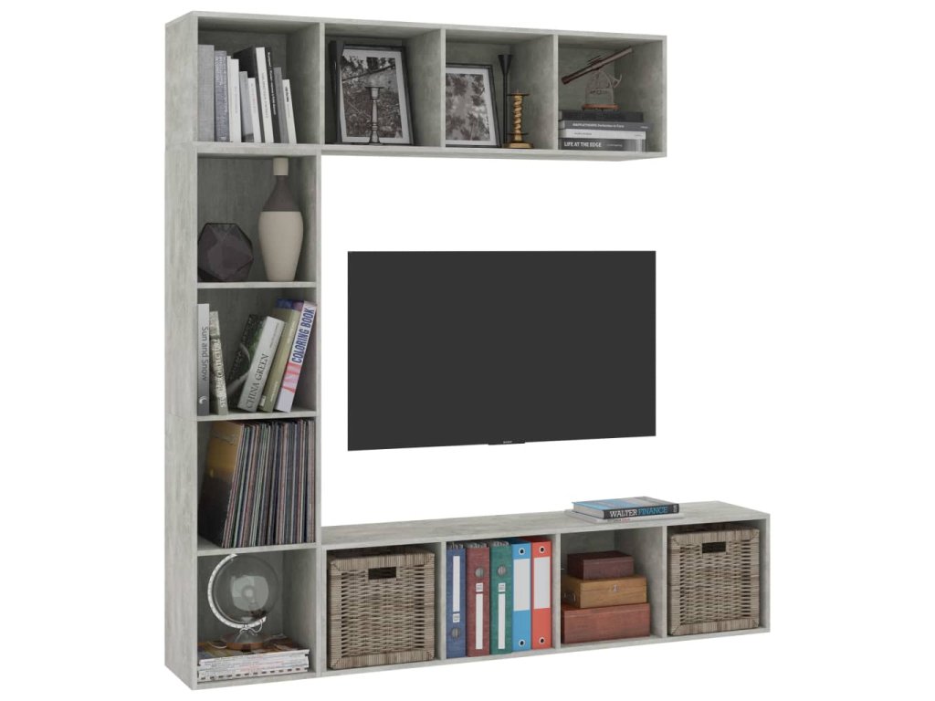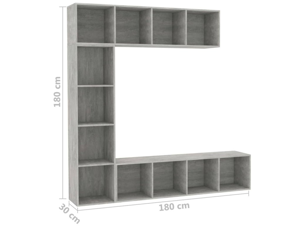 3dílná TV skříňka / knihovna betonově šedá 180 x 30 x 180 cm 278792