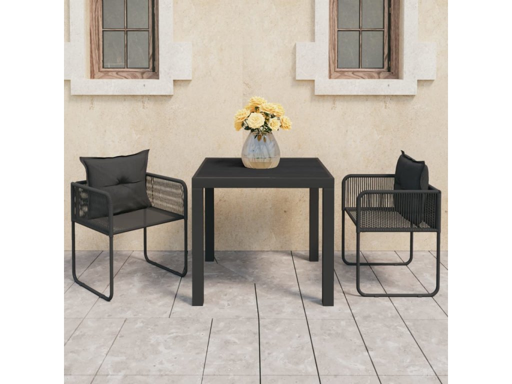 3dílná zahradní jídelní souprava PVC ratan černá 3060100