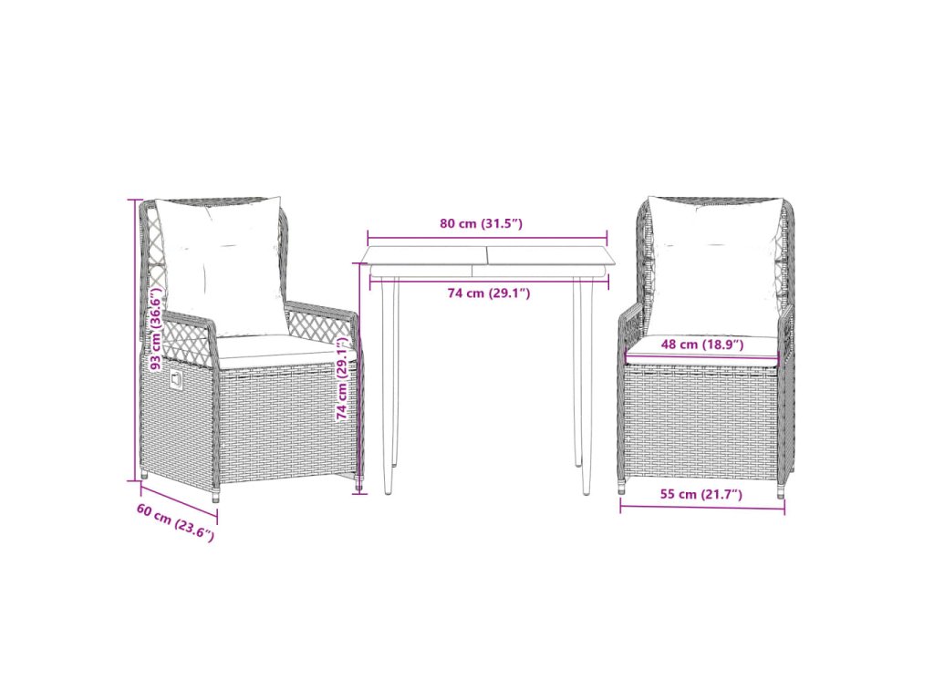 3dílná zahradní jídelní souprava s poduškami hnědá polyratan 3262971