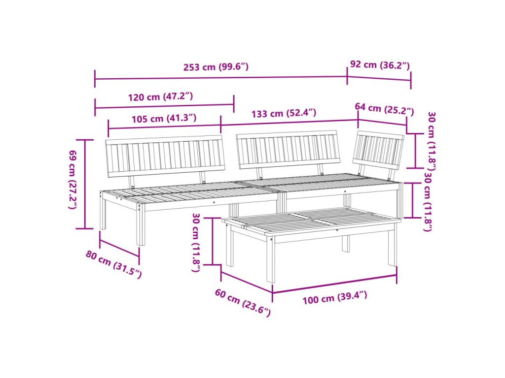 - Odolný materiál: Masivní akáciové dřevo je nádherný přírodní materiál. Akáciové dřevo je tropické tvrdé dřevo, které má hustou strukturu a je pevné a odolné. Je napuštěné olejem, souprava je proto vhodná pro venkovní použití.