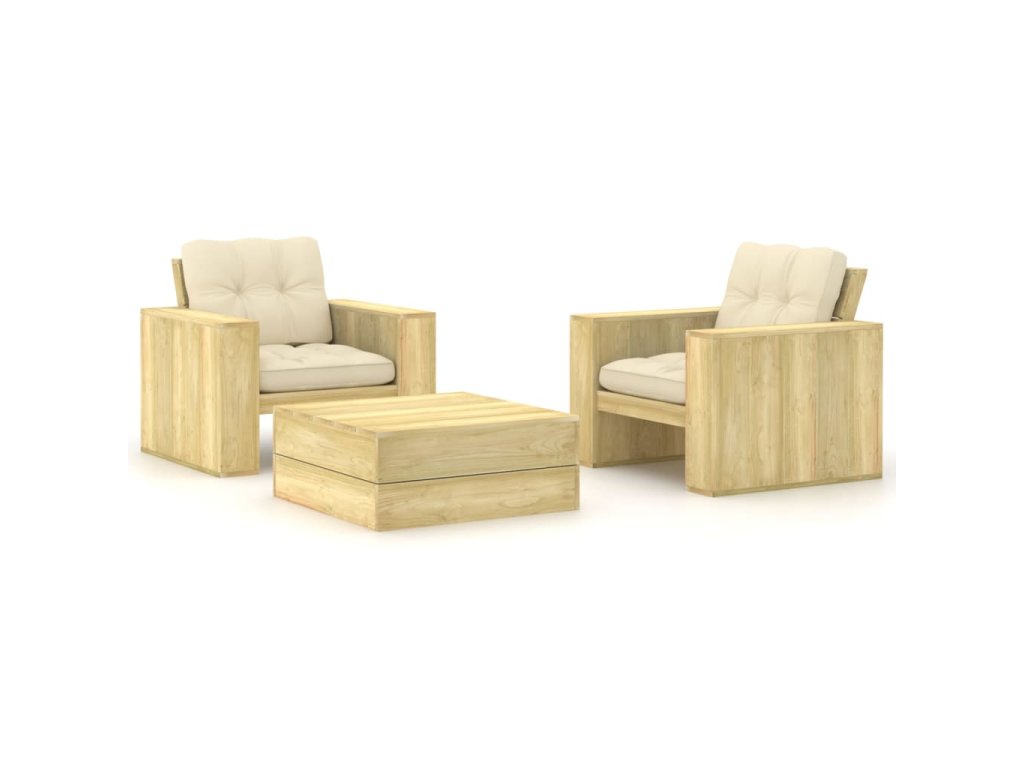 3dílná zahradní sedací souprava a podušky impregnovaná borovice 3065806