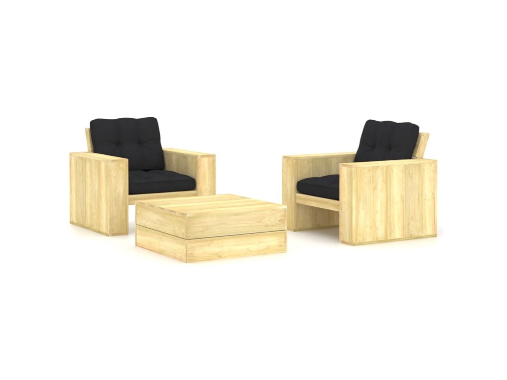 3dílná zahradní sedací souprava a podušky impregnovaná borovice 3065811