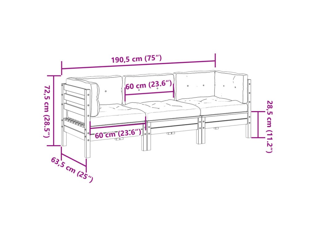 3dílná zahradní sedací souprava a podušky impregnovaná borovice 3299274