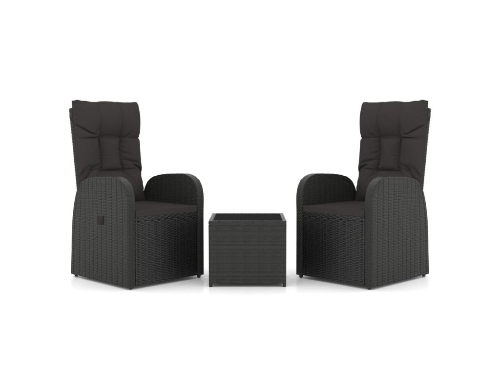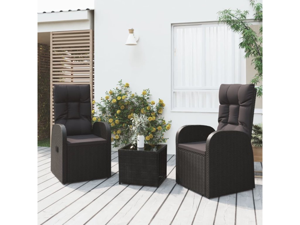 3dílná zahradní sedací souprava černá polyratan a ocel 3157659