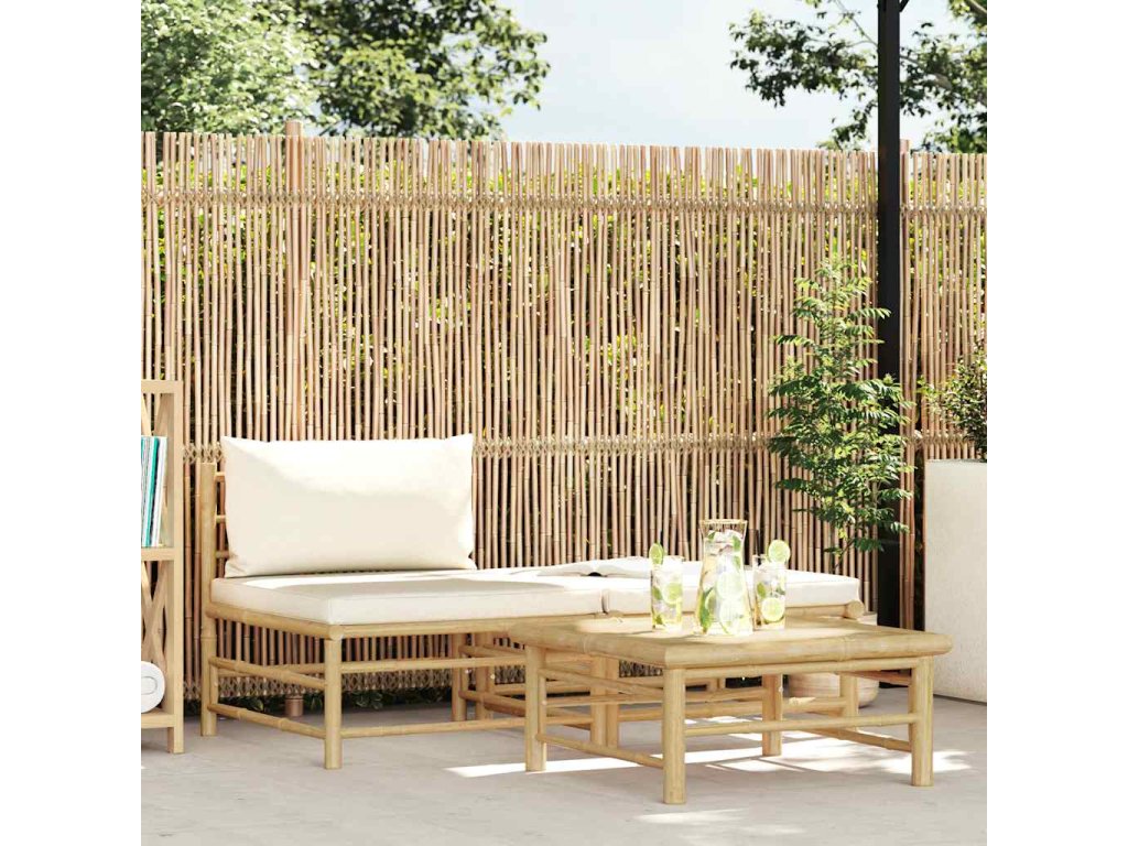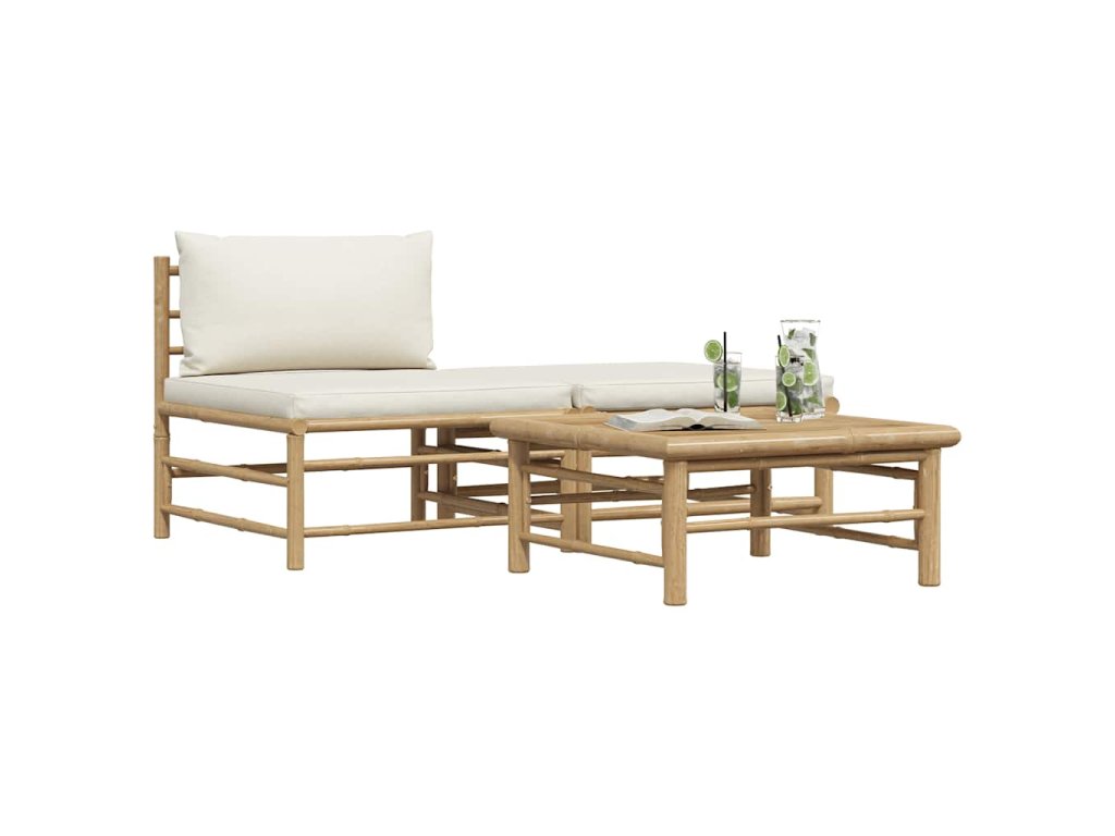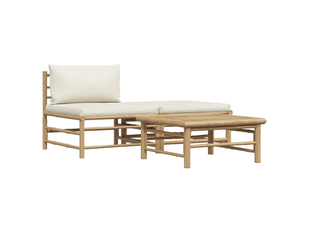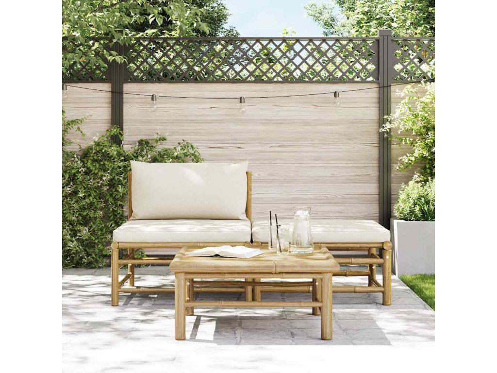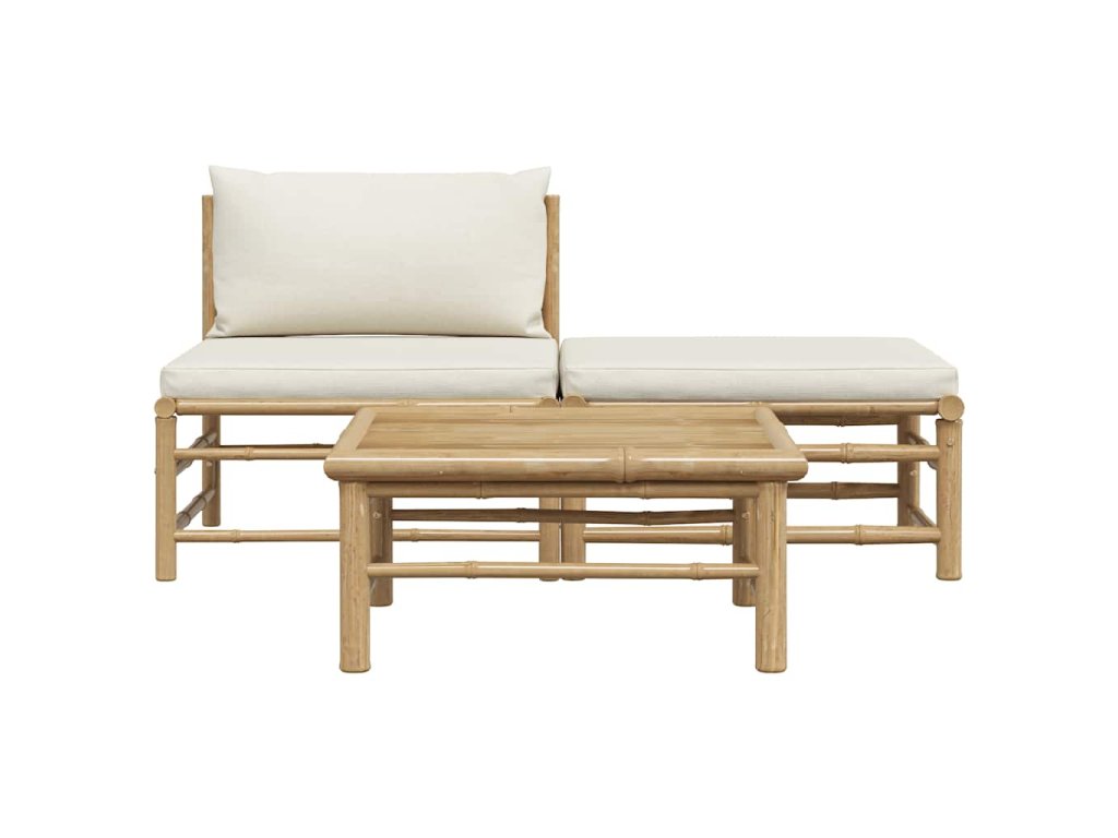 3dílná zahradní sedací souprava krémově bílé podušky bambus 313142