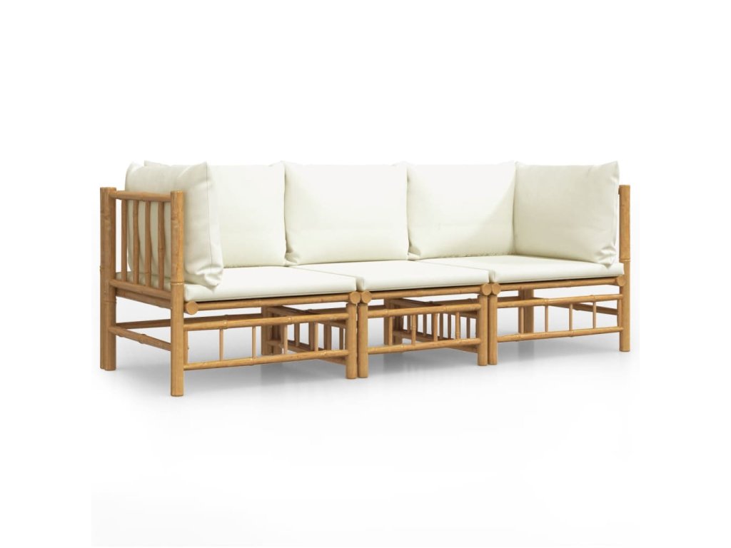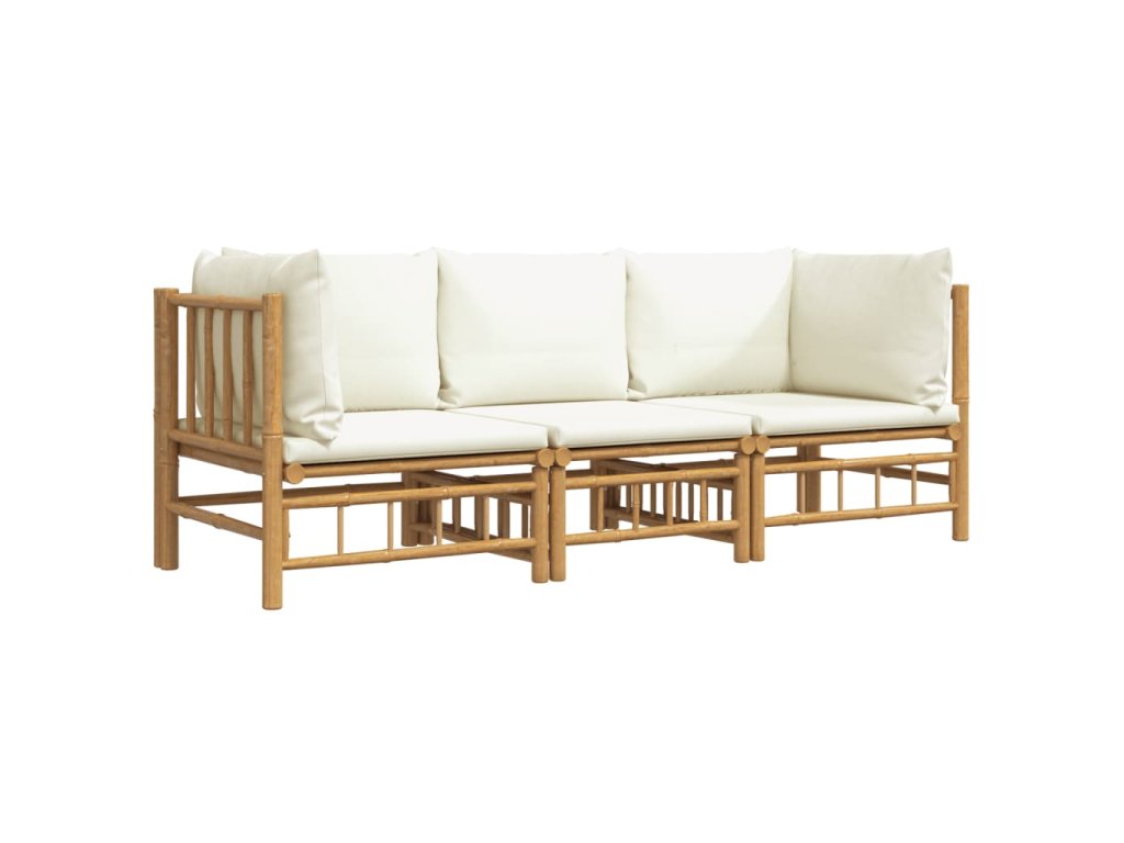 3dílná zahradní sedací souprava krémově bílé podušky bambus 3155183