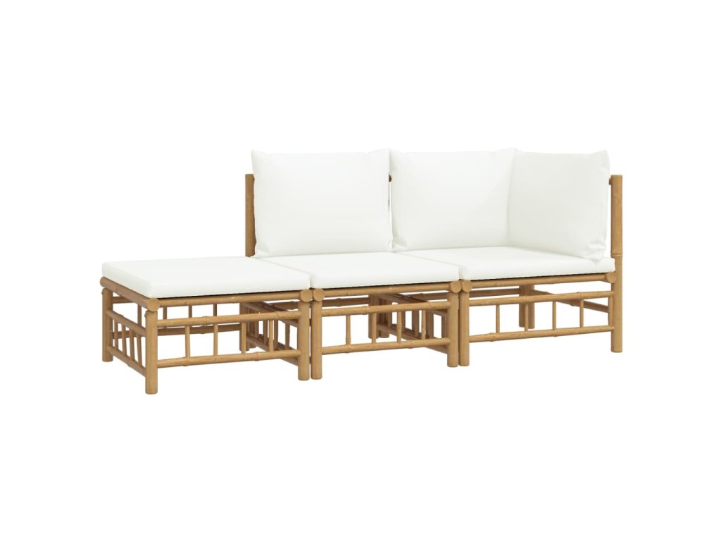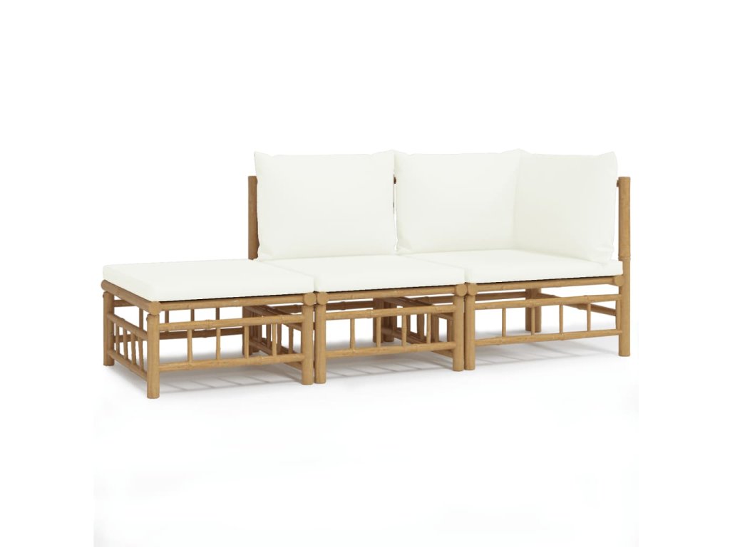 3dílná zahradní sedací souprava krémově bílé podušky bambus 3155204