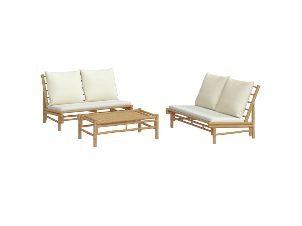 3dílná zahradní sedací souprava krémově bílé podušky bambus 3156483