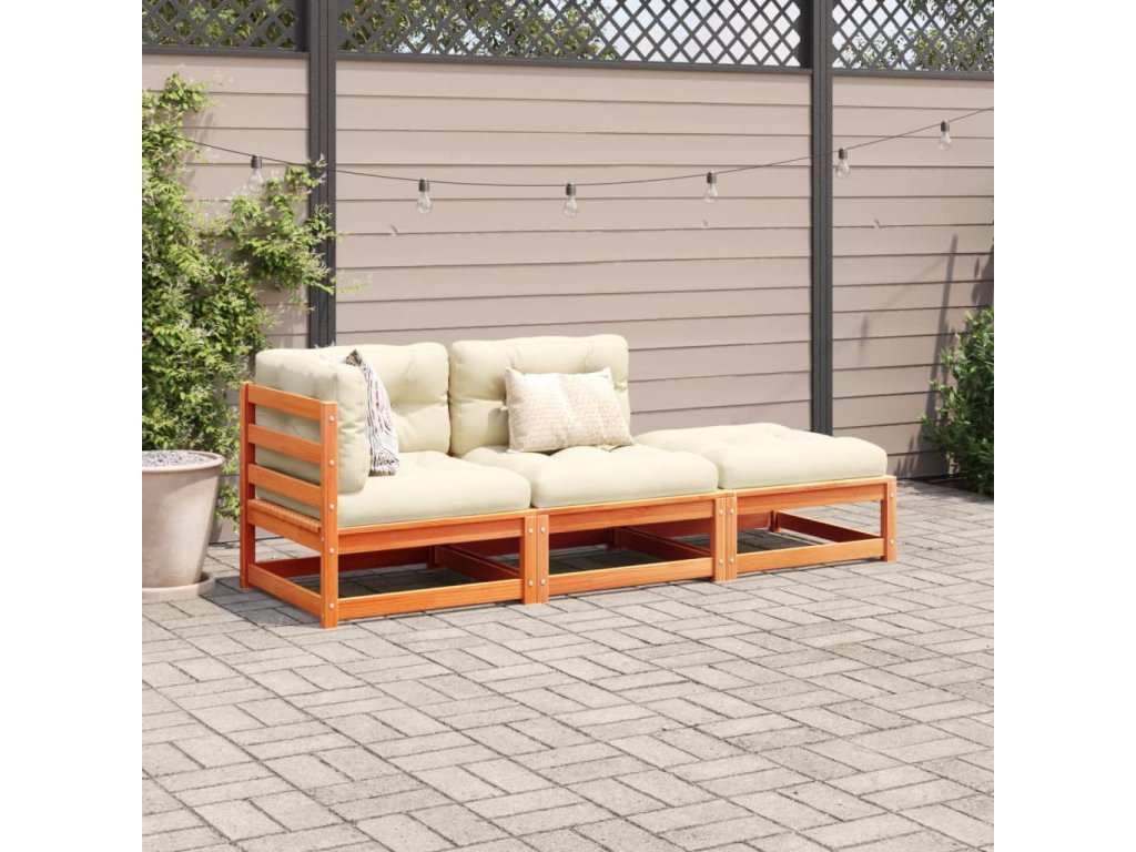 3dílná zahradní sedací souprava podušky voskově hnědá borovice 3295832