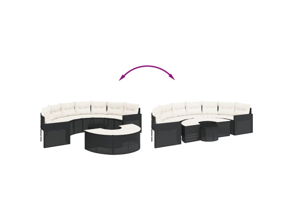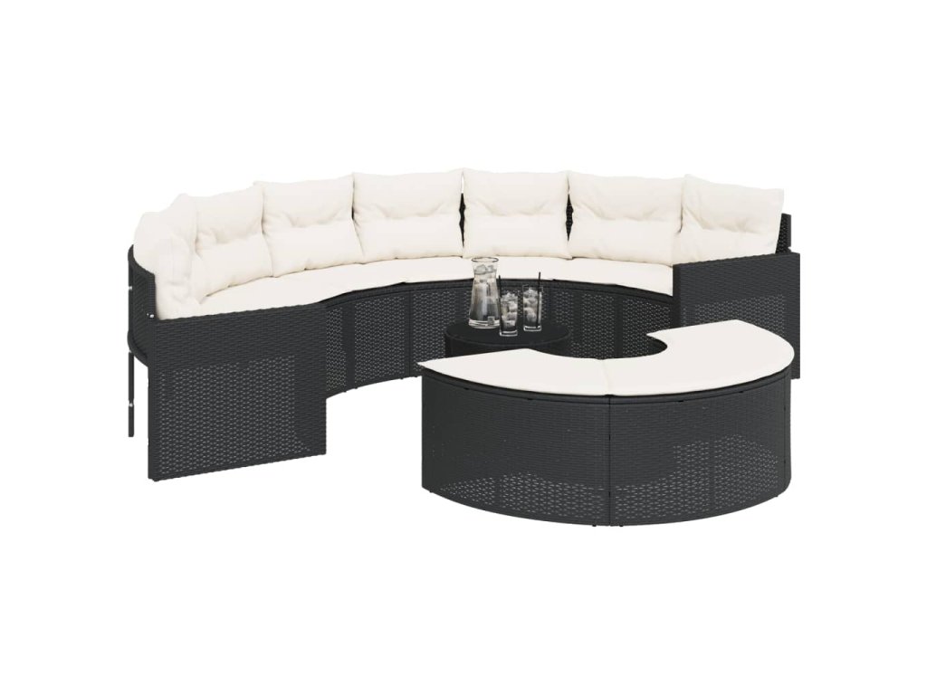 3dílná zahradní sedací souprava půlkruhová černá polyratan 3262065