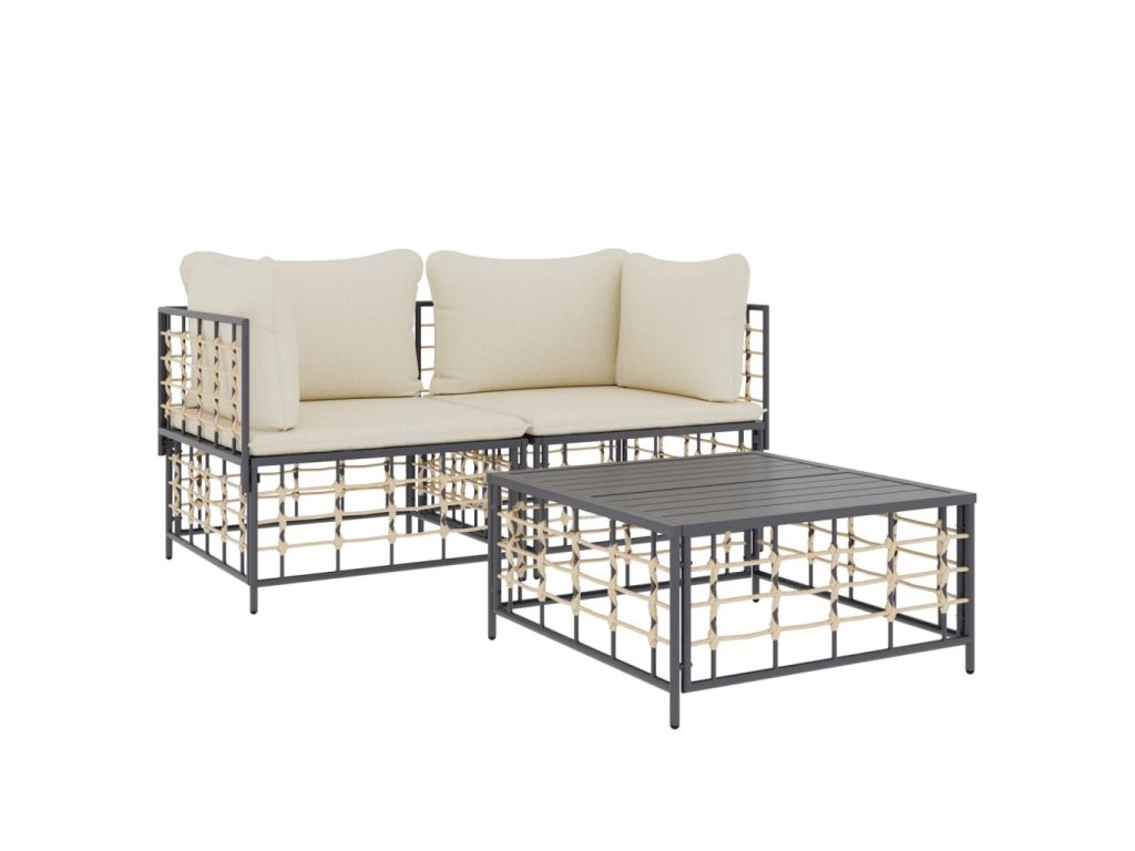3dílná zahradní sedací souprava s poduškami antracit polyratan 3186692