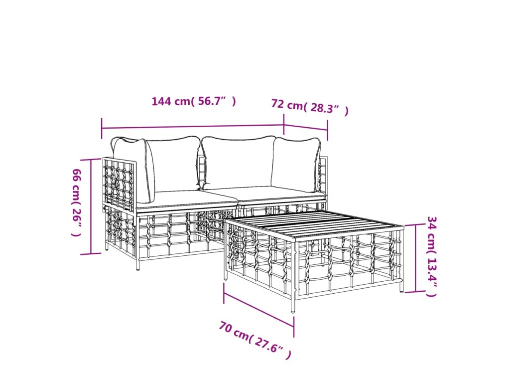 - Rozměry: 70 x 70 x 34 cm (Š x H x V)