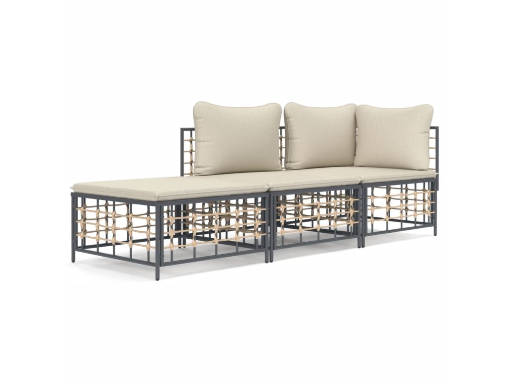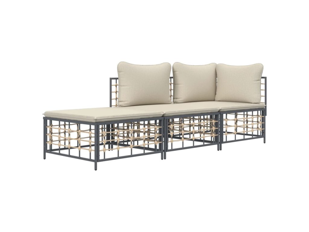 3dílná zahradní sedací souprava s poduškami antracit polyratan 3186724
