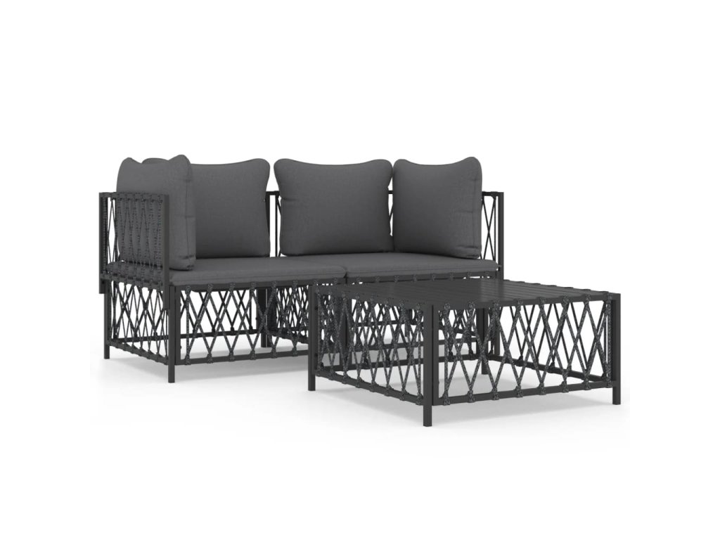 3dílná zahradní sedací souprava s poduškami antracitová ocel 3186815