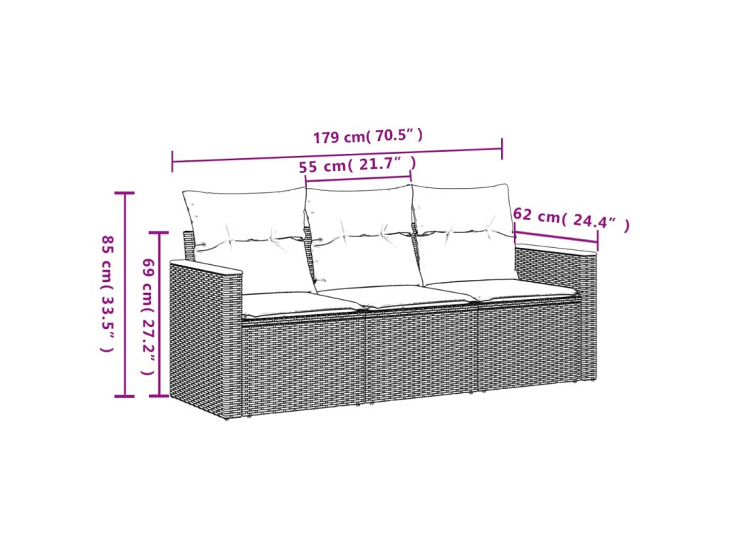 Tato zahradní sedací souprava je dokonalým doplňkem vaší zahrady, terasy nebo dvorku a poskytne vám pohodlné a příjemné místo, kde si můžete povídat s rodinou a přáteli nebo jen tak odpočívat a užívat si pobyt venku.