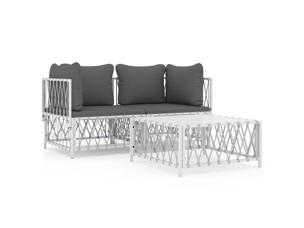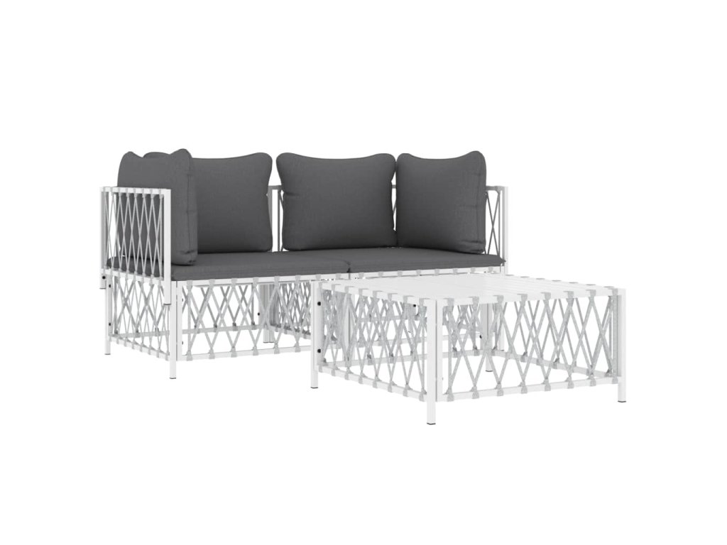 3dílná zahradní sedací souprava s poduškami bílá ocel 3186814