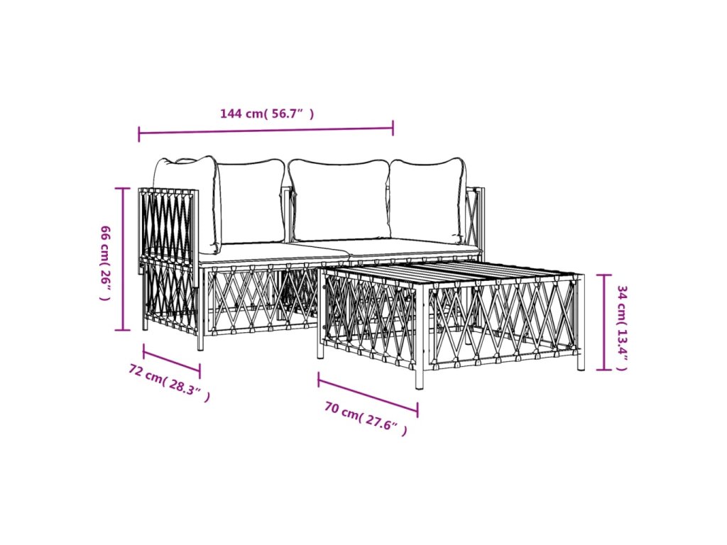 - Robustní rám: Jelikož má práškově lakovaný ocelový rám, je tato sedací souprava robustní a stabilní pro každodenní venkovní použití.