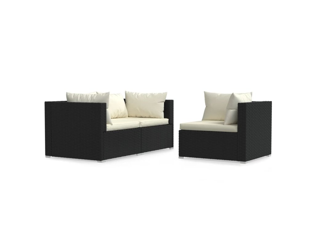 3dílná zahradní sedací souprava s poduškami černá polyratan 317494