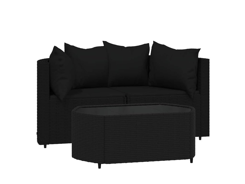 3dílná zahradní sedací souprava s poduškami černá polyratan 319791