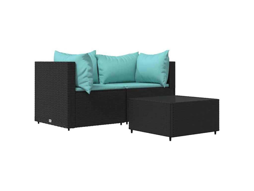 3dílná zahradní sedací souprava s poduškami černá polyratan 319795