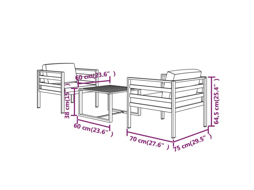 3dílná zahradní sedací souprava s poduškami hliník antracitová 3107780