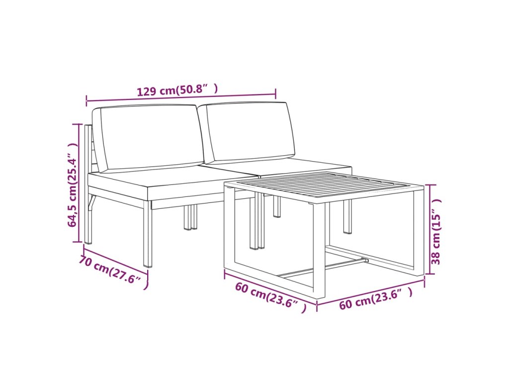- Rozměry středové pohovky: 64,5 x 70 x 64,5 cm (Š x H x V)